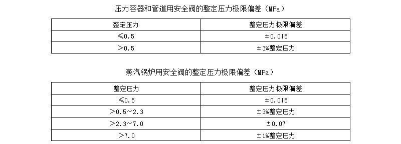 注:GB/T 12243-2005《弹簧直接载荷式安全阀》整定压力偏差规定: